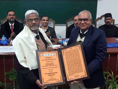 Prof Nizamuddin Khan, former Chairman, the Department of Geography at Aligarh Muslim University has been honoured with the prestigious Bhoogol Vachaspati Award, conferred on him by the National Association of Geographers at the inaugural function of the Indian Geography Congress organized by the Department of Geography at Osmania University in Hyderabad.